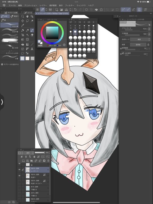イラスト練習2週間目くらい 可愛く描けてる気がするけどハイライトが下手? 風船みたいな質感になっちゃう てか8時間くらいかかった。。でも楽しかった