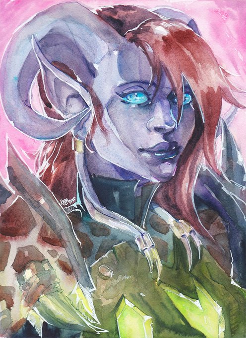 Watercolor portrait for @Senzyri of their Draenei huntress :)