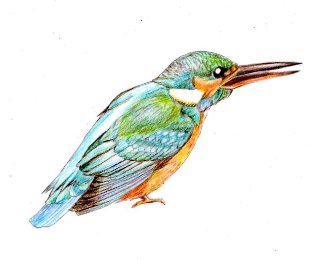 カワセミ:「清流の宝石」とっても美しい。近所の用水路にいたよ。近所の神社にはハンミョウもいるし、岡山は生き物好きにとって最高!#イラスト #カワセミ #みんなで楽しむTwitter展覧会