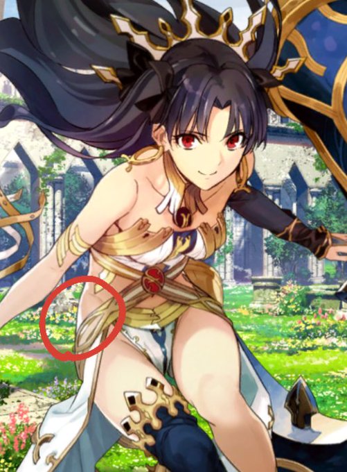 赤丸の部分にパンツが見えないからこの腰とおへそをぐるっと巻いてる金属と一体型の衣装かな…と勝手に推測 それはともかくここにパンツ部分ないとめっちゃアレよねアレ🤤