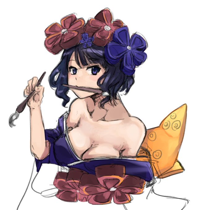 この間の塗りました。ラフをあえて残す事でちょっと紙から出てくる感じ出てない?えっ、出てないですかそうですか・・・ #葵の絵
