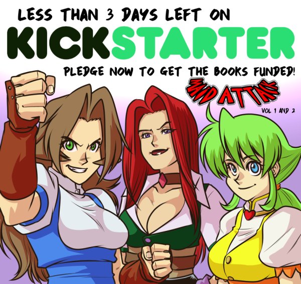 Less than 3 Days left to the Kickstarter! We're nowhere near funding but I'm not gonna drop and give up on this! Let's get the books funded yo! Share and spread the word! #kickstarter #comic #graphicnovel #maidattack #maid #fightingmanga