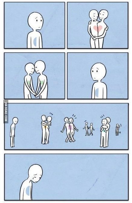 "Zeus partió por la mitad a los humanos, cada mitad buscaba sin descanso la otra de la que había sido separada; y cuando se encontraban ambas, se abrazaban y se unían, con ardor tal que, abrazadas, no querian hacer nada la una sin la otra"