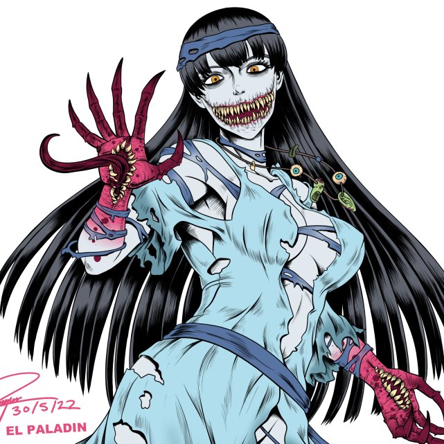 #Commission #commissionart #girl #tooth #handmouth #ghosty #character #oc #fullbody #flatcolor #digital #drawing #illustration #art #horror