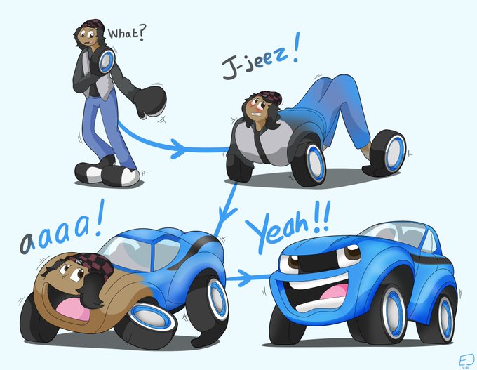 Time for @/Molotoxic (FA) to turn into a cartoony Dodge Challenger! Glad the guy finally liked his change in the end there~