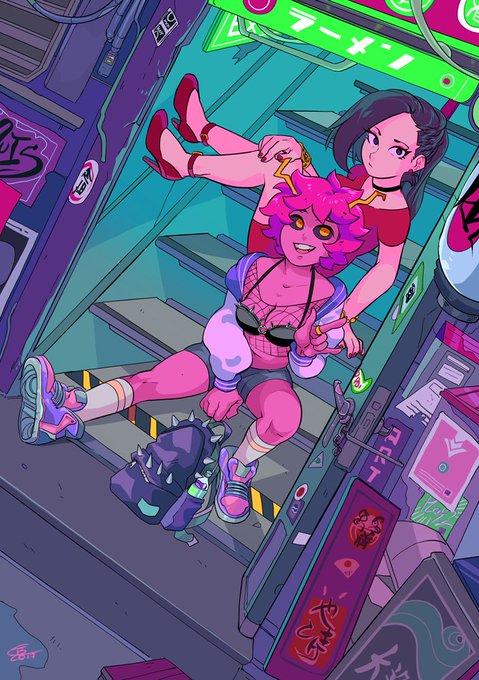 My artwork for @myheroinezine ✨✨ Mina and Momo hanging out for some disco nightssssss, bless them