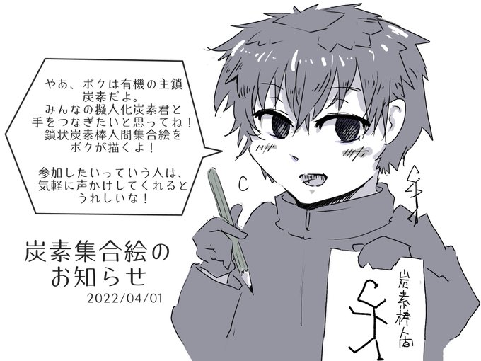 これだけ反応されたので反応早い人と炭素棒人間化が楽しみでたまらない感じの人にはお詫びで炭素君が描こうかと、