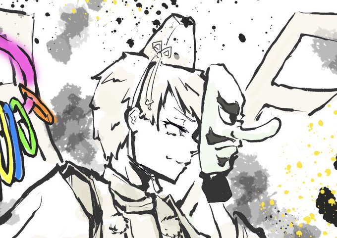 深夜に秋祭り舞踊してる元素の進捗報告ーー、謎の舞をしてる燐、Fox舞の弗素、六手黒演舞してる炭素、あるみかんの舞🍊 #元素擬人化 #秋祭り