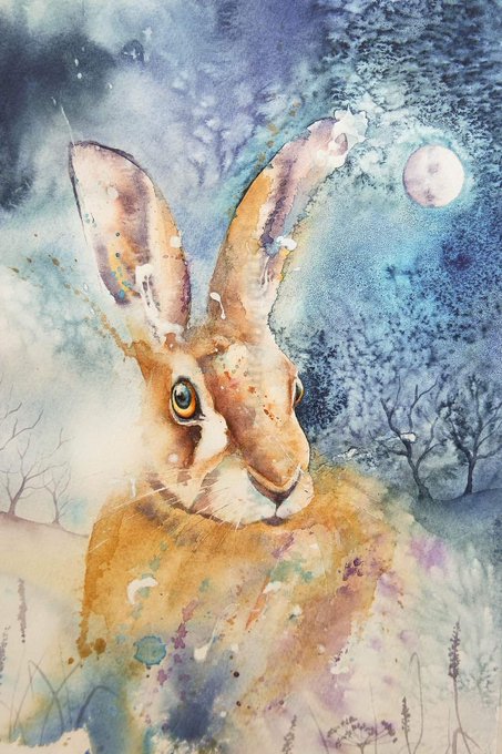 A while since I painted a hare in the moonlight, have a magical Monday x