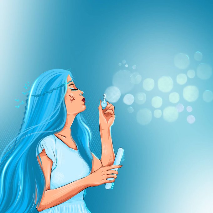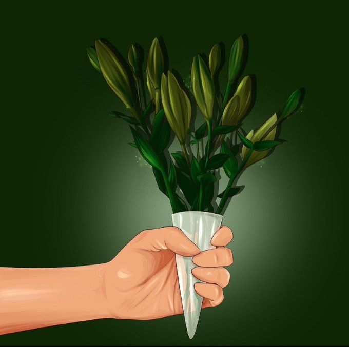 The green girl is kind and calm.