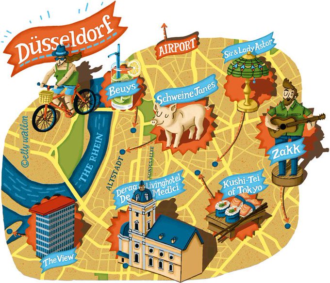In case you missed it earlier - my recent map of Dusseldorf for Aer Lingus #cartography #mapillustration