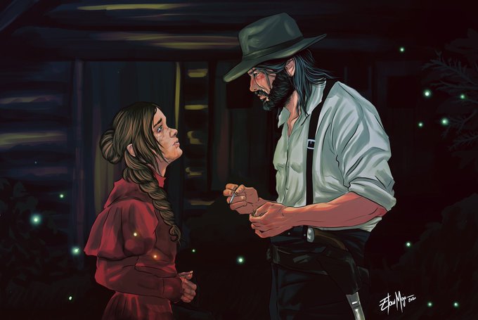 • 𝔉𝔦𝔯𝔰𝔱 𝔪𝔢𝔢𝔱𝔦𝔫𝔤 • Crossover RDR/TLOU #TheLastOfUs #RedDeadRedemption #Ellie #Joel