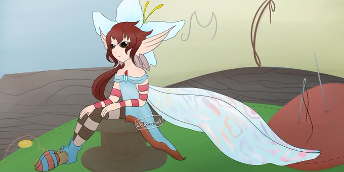 She originally had a bird theme going but I eventually shifted it to butterflies and other winged insects. Here's some other art I made of her in previous years.