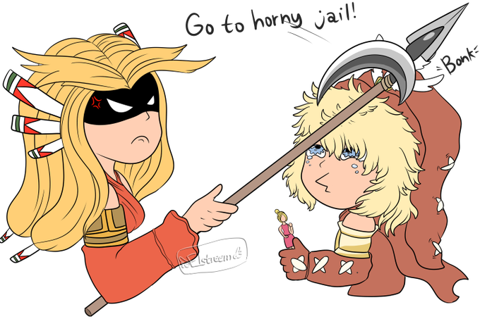 The joke is supposed to be that in the official art, the Hero always has a serious face while Heroine is always smiling, while in the manga, Toto is a goofy protagonist with Imu being the more serious character. Also I drew them too big in the original art lol.