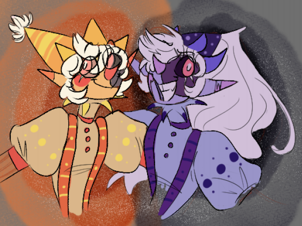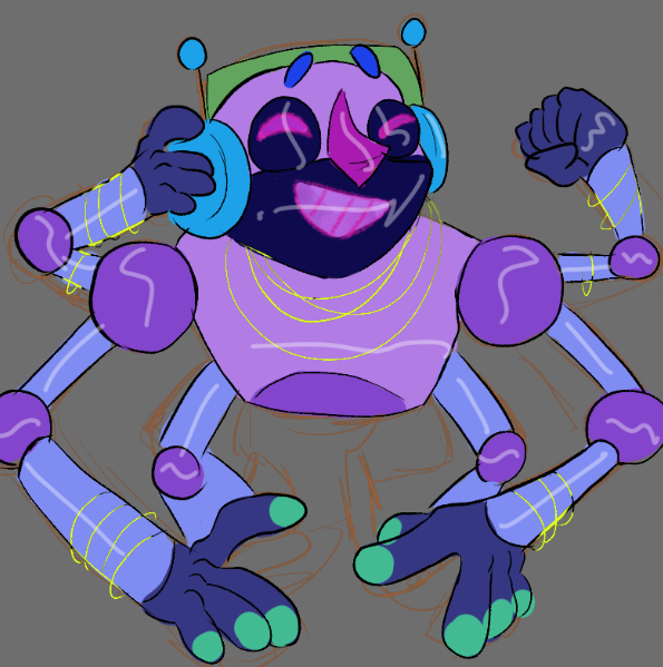 heres the au designs for sun,moon, and music man! I didn't change DJMM's design too much besides the glow necklaces and the screen eyes/mouth bc he looks so cute n fun :>