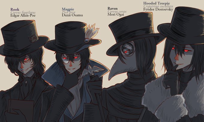 #文豪ストレイドッグス #文豪野犬 #文スト 「Bungo Stray BIRDS」paro設定②:太宰(カササギ)、織田作(ミサゴ)&安吾(フクロウ)