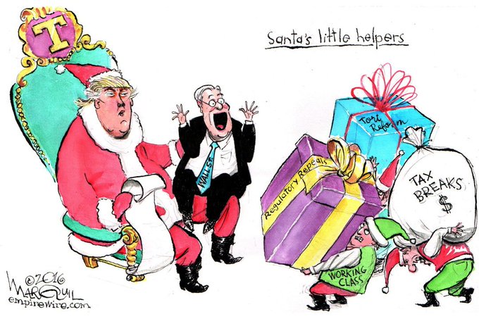 EmpireWire cartoon (https://t.co/dBnDEMNBUr): Santa #Trump's little helpers. #WallStreet