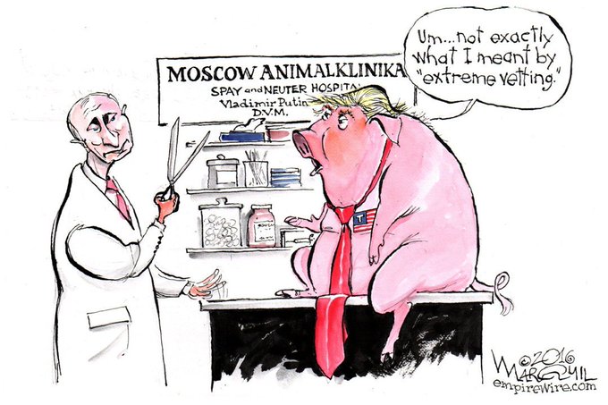 EmpireWire cartoon (https://t.co/dBnDEN5dj1 ): #Putin's #ExtremeVetting of Donald #Trump's America. #russiagate #RussianInterference