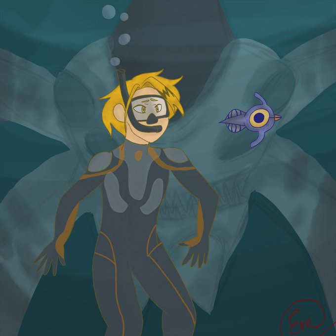 I was just watching @KylePhillipsFUN ‘s Subnautica Stream and couldn’t help doing some fanart. Nice way to start off October! #MyHeroAcademia #subnautica