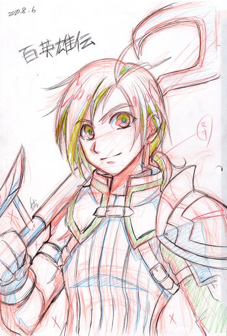 板タブから直接描いてたんだけどなんか違和感感じて、出力→線画を改めて出力したのを下敷きに取り直したところこんだけずれてるっていう……ダメジャン……_| ̄|●<ほぼやりなおしー #百英雄伝 #EiyudenChronicle