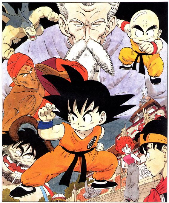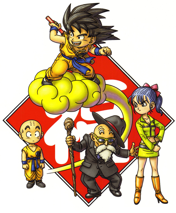Toriyama's Bonus Figure Image Illustration for volumes 1-12 of Dragon Ball's DVD Singles set (~2007) — As you may have guessed, it had an accompanying nostalgic diorama of Kuririn being confused by Bulma getting angry with Turtle Hermit as Son Goku rides with Kinto'un