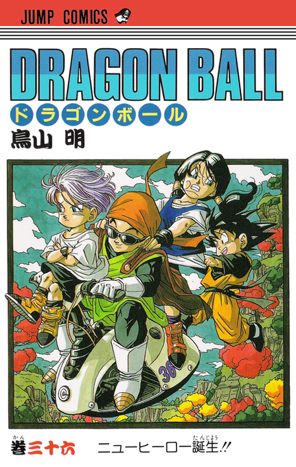 Cover Illustration of Dragon Ball's 36th volume (1993/11/04) — Great Saiyaman & company enjoy a leisurely air ride!