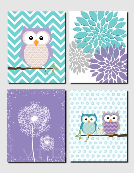 #Brooklyn #wall #Prints #owl #girl #Peonies #baby #set #teal #Dandelions #Nursery #Purple #vtdesigns #EtsyEmail