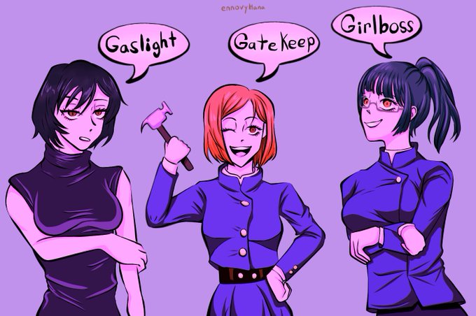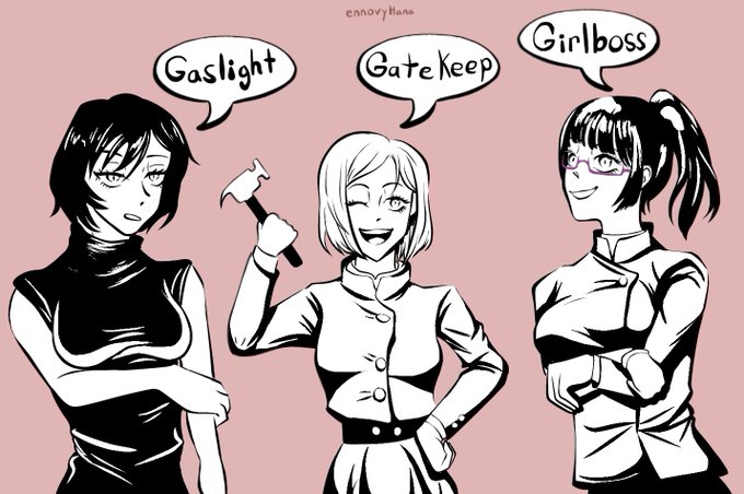 #JJK #JujutsuKaisen #jujutsukaisenfanart #makizenin #maizenin #nobarakugisaki #maki #mai #nobara #fanart #gaslightgatekeepgirlboss #呪術廻船 #禪院真希 #禪院真依 #釘崎野薔薇
