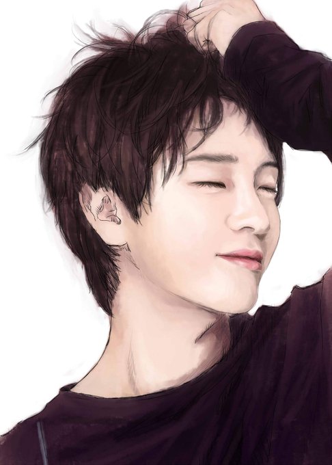 まだ雪降ってる😗 出掛けられないから前に描いてたソンモさんをカラーにしました☺️💕