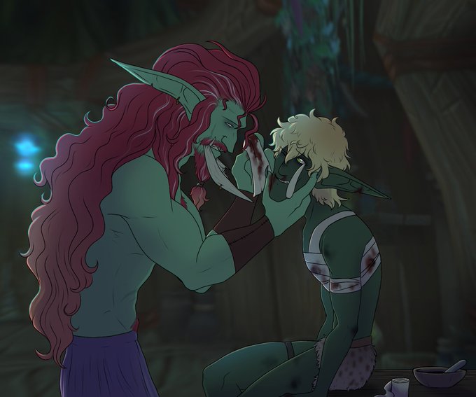 My art is mostly of my hyperfixations of whatever hits me at that moment. World of Warcraft mostly. I like drawing males, fangs, claws... Monster thingies 💜