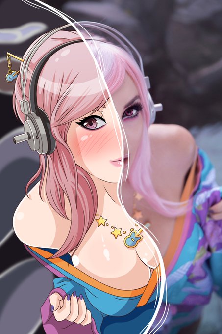 she is in sonico cosplay, best cosplay and best waifu together, I didn't resist to draw it ^^