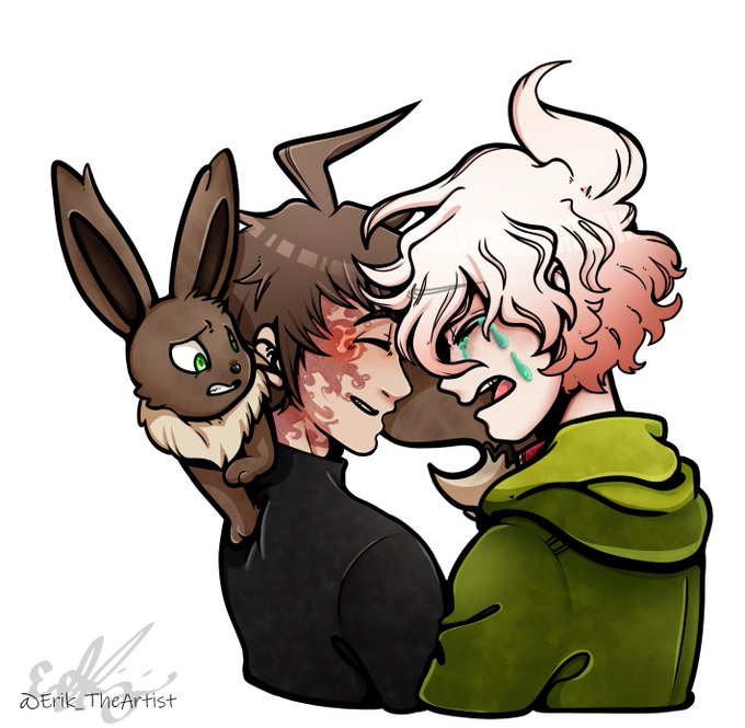 #Pokemon U stuff with @tikibunswriting; Hajime was hit by a Phantom Force by Izuru's Gengar--- Luckily he made a full recovery but got a nasty scar. #danganronpa #Nagitokomaeda #hajimehinata