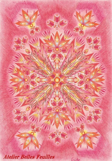 【今日のマンダラ】 「Belles Feuilles(ベル・フィーユ)」 <キーワード> 生命力・癒し・リラックス・新陳代謝・森林浴・休憩・伸びゆく力・瑞々しい・葉・緑の匂い・深呼吸・生きる喜び #今日のマンダラ #マンダラアート