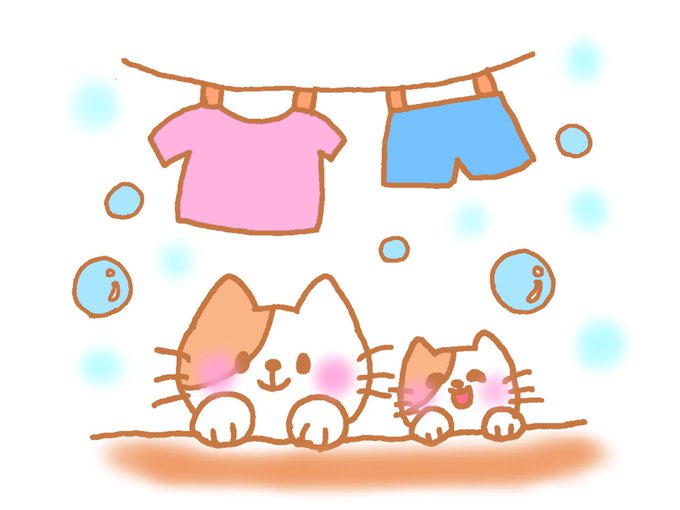 久しぶりの投稿です☆ 今日はお洗濯が捗りました☀️✨ 梅雨が明けるのは、もう少し時間がかかりそうですね☔️ #ねこ #イラスト #洗濯