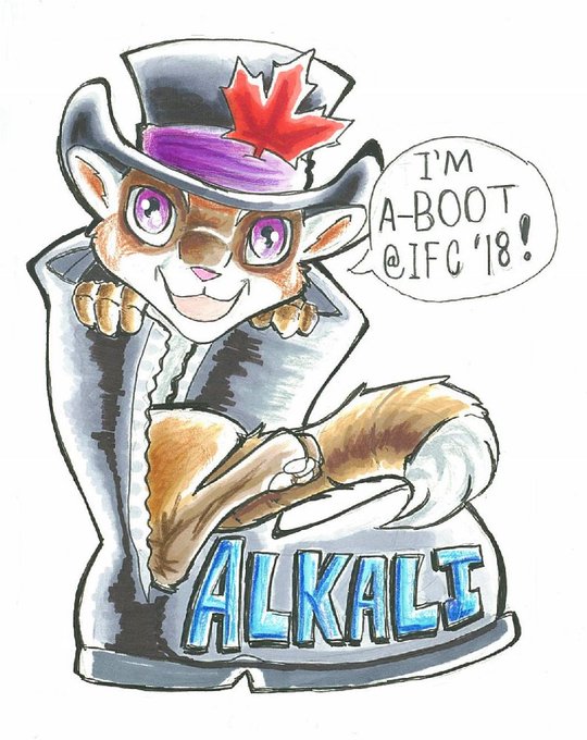 @Alkali_Bismuth 36th birthday badge some of you probably saw @IndyFurCon. The tagline is, predictably, from @TheDraggetShow . Really pleased with this one!