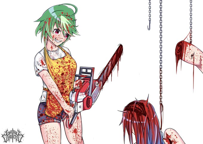 Gore warning . Fanart of Chainsaw-chan of Yandere Chainsaw Regurgitation Factory . #FANART #gore #blood