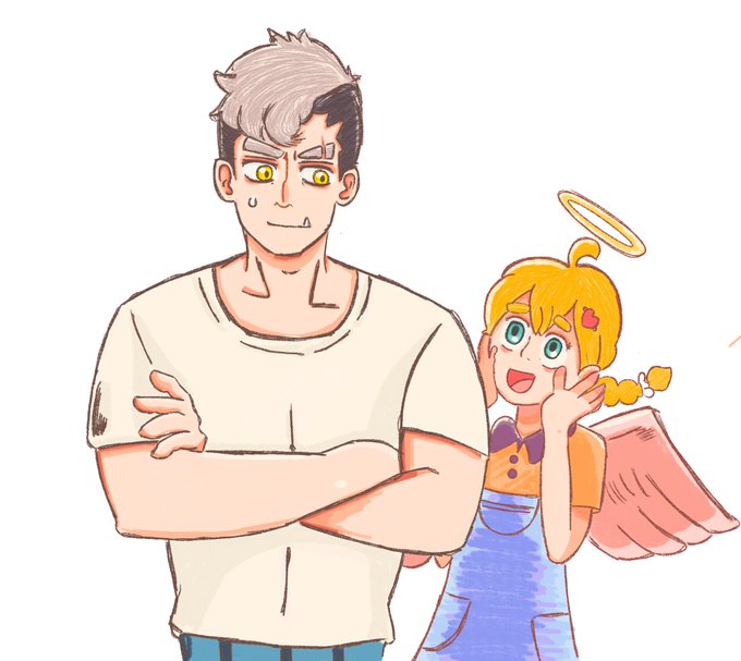Este es un dibujo de mi oc junto a uno prestado ....