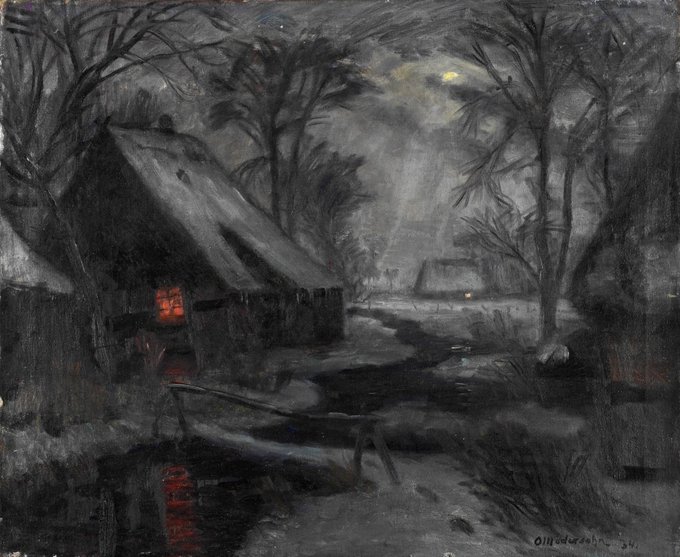 «Winterabend in Fischerhude» Otto Modersohn, 1934. #painting_estetico