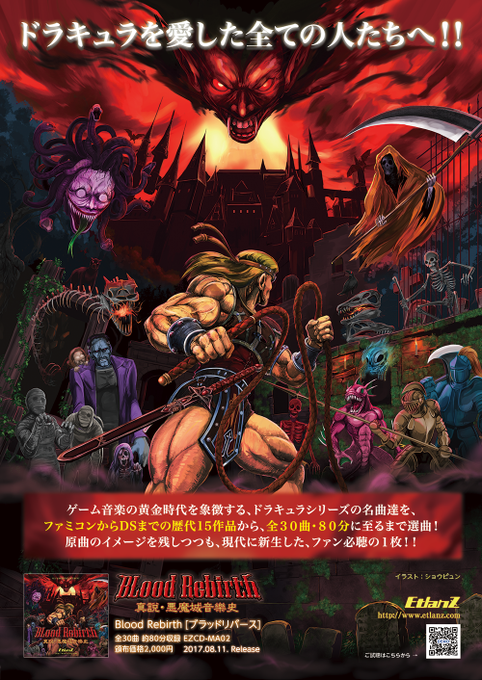 【告知】11/12開催のゲームレジェンドに今回も参加させて頂きます!夏コミ等で大好評を頂いた『Blood Rebirth』をこちらでも頒布。ドラキュラ30周年を記念し、全30曲もの超絶ボリュームで選曲した1枚です!#ゲームレジェンド