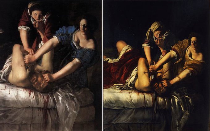 Judith is thought to be a self-portrait. Although the painting depicts a scene from the Bible, art historians have suggested that Gentileschi drew herself as Judith and her mentor Agostino Tassi, who was tried for and convicted of her rape, as Holofernes.