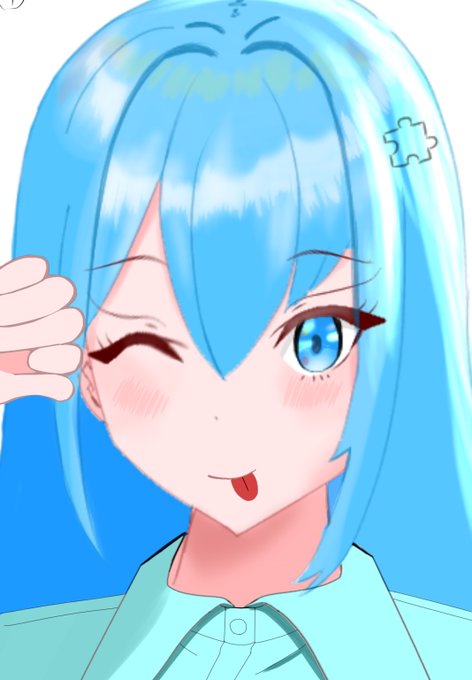#イラスト #オリキャラ #イラスト練習 髪色青バージョン