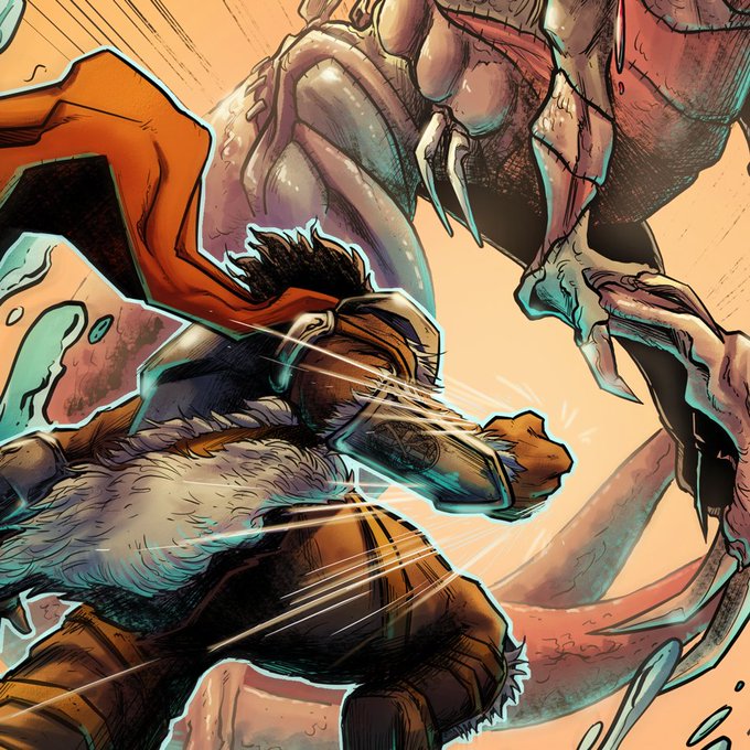 #art #comicart #comicstyle #fight #action #monster #creature #illustration #lineart #pencilart #colorart #freelance #hunter