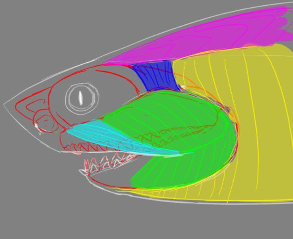Here is a diagram of earlier arthrodires meckel’s cartilages compared to dunk, and a restoration