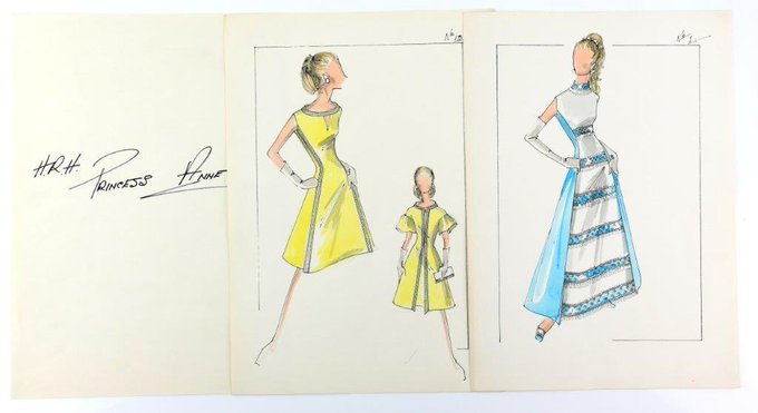 Fashion history for sale on 11th November: a collection of designs by royal dressmaker Sir Norman Hartnell, including designs for Princess Anne.