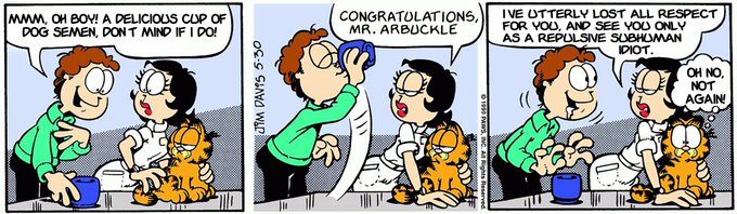 @garfieldpicture This was actually the original cut before Jim was told by the newspaper agencies to completely scrap the idea and censor it for child viewing.