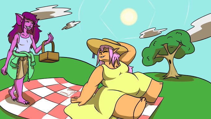 A comic I’ve been working on for a while, featuring @bobbleslime’s cyclops lads, Buck and Butch! Buck is an overeater, and Butch never backs down from competition, so it goes exactly where you’d expect.