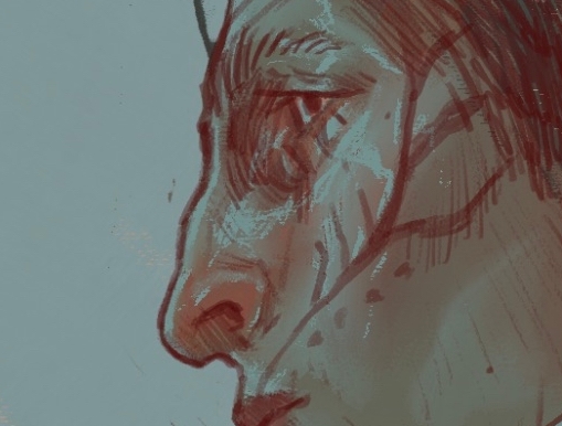 also when there is a gathered drop of blood or tears at the tip of the nose???? or the chin??