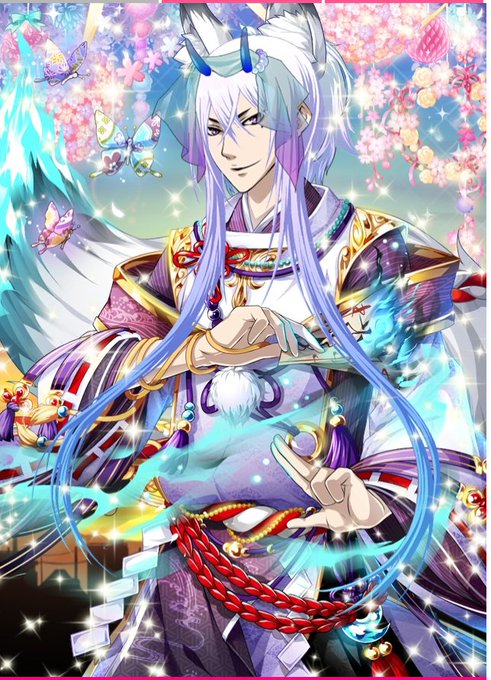 お狐併せ並べてみた。【白/真珠郎 シンジュロウ】【黒/竜之介 リュウノスケ】【青/七緒 ナナヲ】 #擬人カレシ