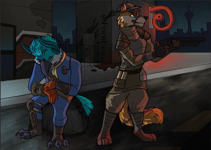 HUGE OL COMMISSION FOR @Meikurey and @Comrade_Frankie !!!!! This is fallout new vegas themed, so even though I've barely seen the game, I hope I did it justice!! Thanks so much for commissioning me!!!! <3 <3 <3 <3 <3