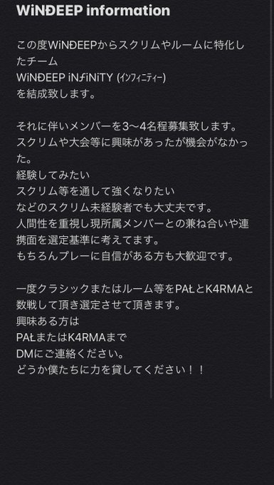 この度WiNĐEEPからスクリムやルームに特化したチーム